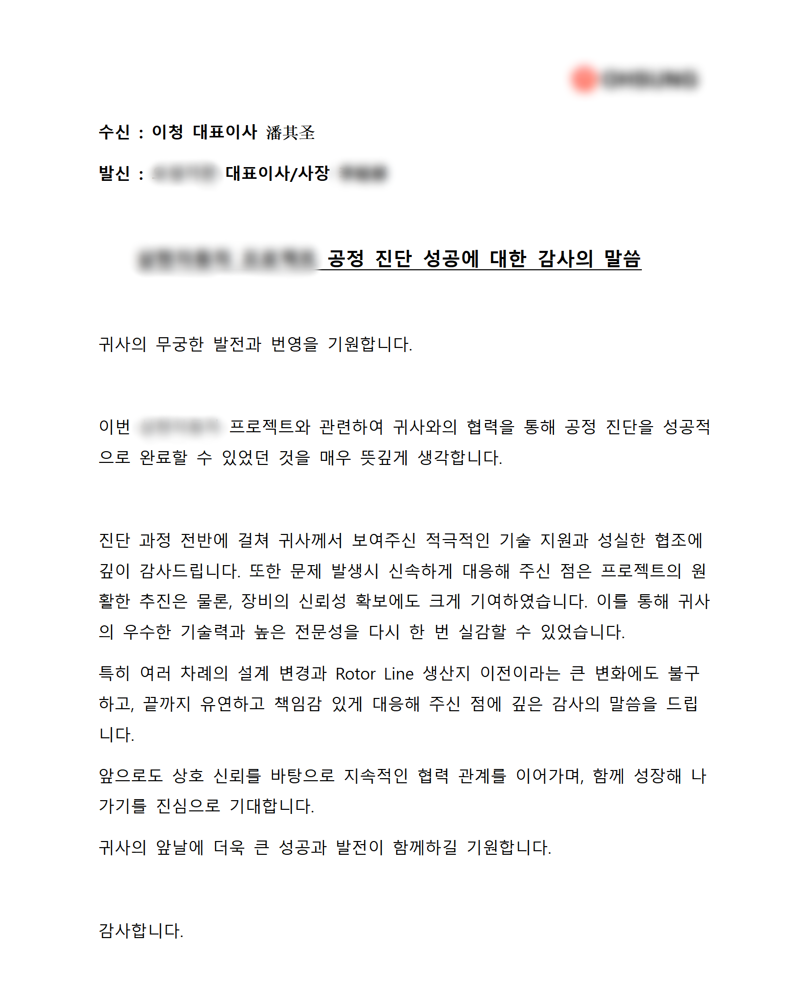 該客戶是韓國(guó)汽車配件與電子電器零部件制造領(lǐng)域的行業(yè)巨頭,業(yè)務(wù)遍布全球。作為多次合作的老客戶,此次獲得其官方認(rèn)可,不僅是對(duì)益誠(chéng)技術(shù)與服務(wù)的再次強(qiáng)力印證,更證明了我們具備持續(xù)服務(wù)全球高端制造網(wǎng)絡(luò)的能力,為雙方未來(lái)的深度合作注入了更強(qiáng)信心。