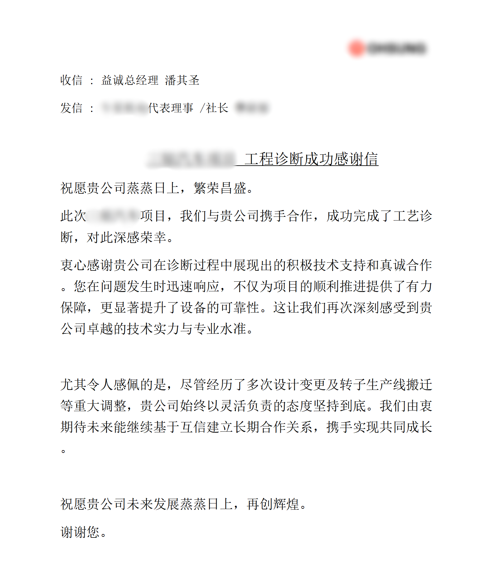 客戶的每一次認(rèn)可,都是我們持續(xù)創(chuàng)新的動(dòng)力。益誠(chéng)將繼續(xù)深耕自動(dòng)化與工藝優(yōu)化,致力于通過(guò)可靠的解決方案與優(yōu)質(zhì)的交付服務(wù),在客戶邁向智能制造的轉(zhuǎn)型旅程中,成為值得信賴的合作伙伴。
